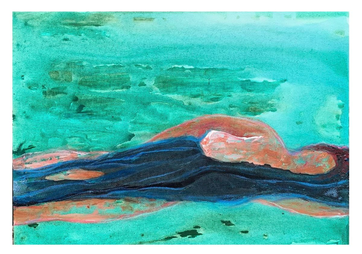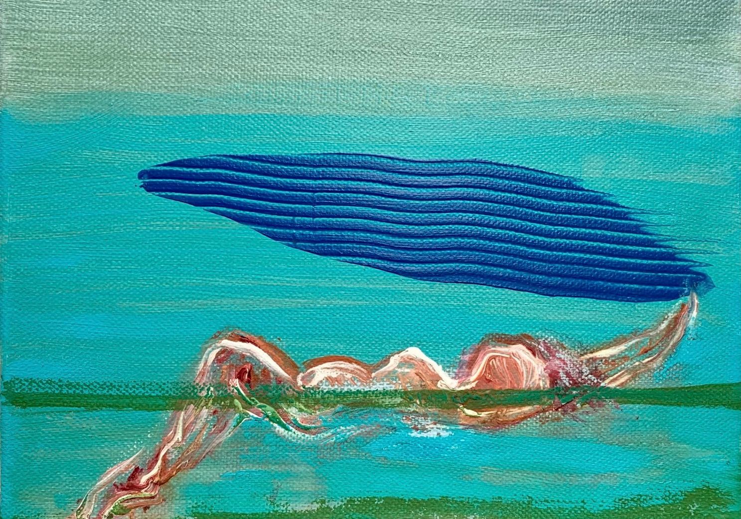 At this time Barbara was on a mission to produce "Sacred Breasts" an inspirational anthology. Her vision—a work of passion and lived experience. She invited me to contribute and asked if I would be open for her to produce paintings from my shoreline photographs which feature my death silk with my body laid bare along the shoreline of Lake Superior (2019) and Lake Nipissing (2022) Canada.
